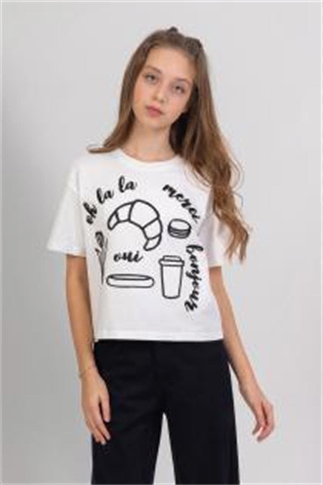 DMB Kız Çocuk Baskılı Tişört Beyaz M0504