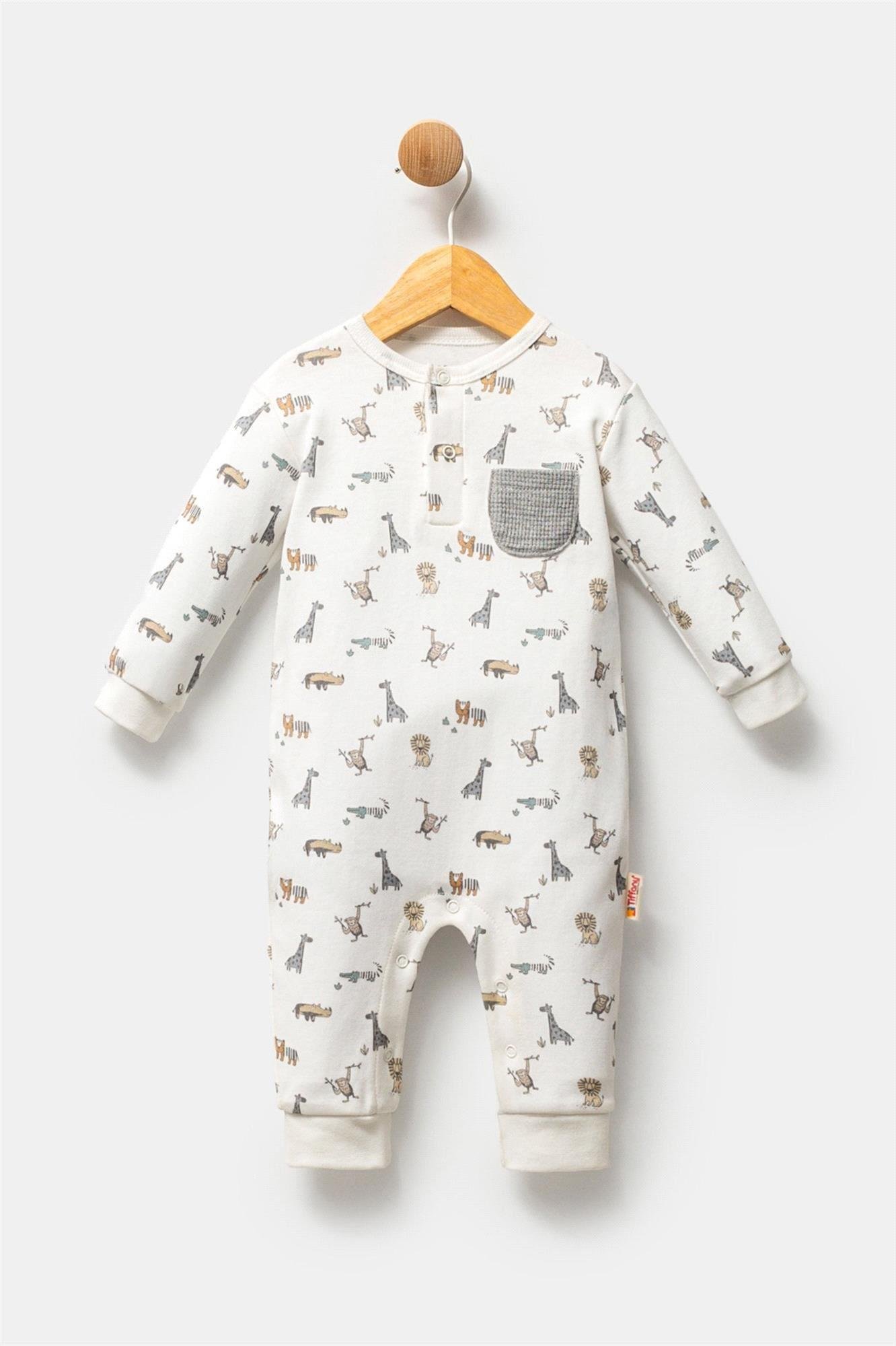 Tiffany Animal Erkek Bebek Patiksiz Tulum Ekru 32004