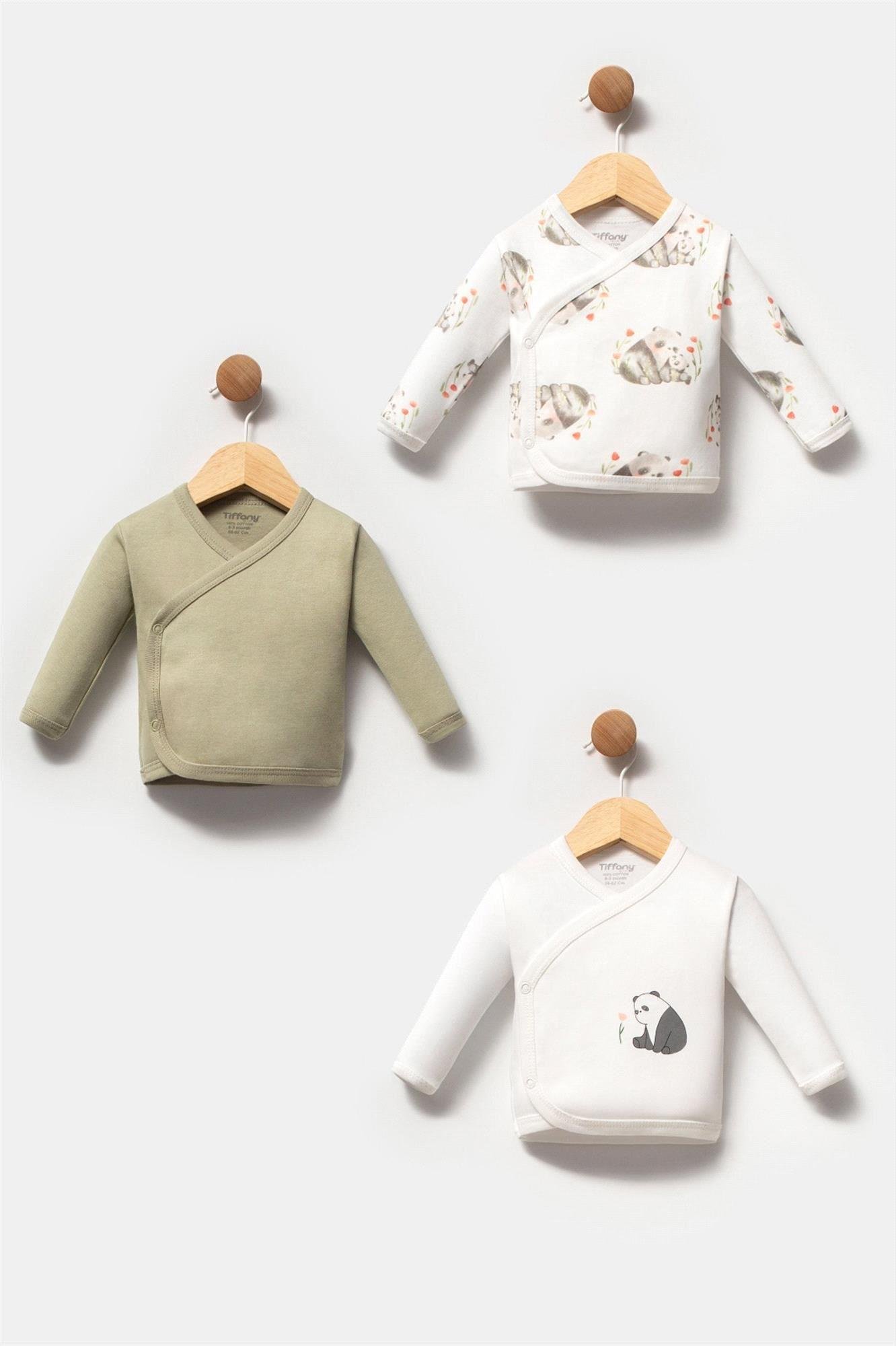 Tiffany Panda Erkek Bebek 3'lü Zıbın Set Ekru-Haki 16078